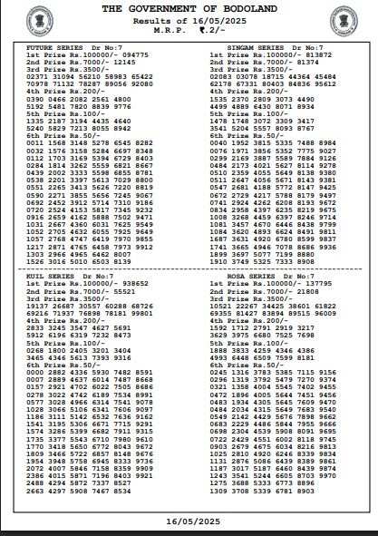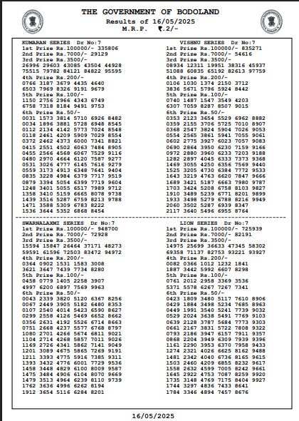 Bodoland Lottery Result Today May 16, 2025: Download Winning Numbers, Prize Details & More