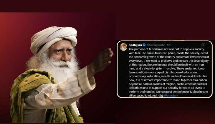 Renowned spiritual leader and Isha Foundation founder Sadhguru Jaggi Vasudev has strongly condemned the recent terror attack in Pahalgam, Jammu and Kashmir, which claimed at least 26 lives, primarily innocent tourists. Expressing deep sorrow and heartfelt condolences, Sadhguru emphasized that terrorism's true intention is not war but to destabilize society through fear.