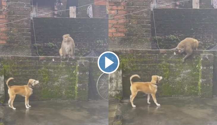 Monkey Vs Dog Viral Video: बंदर और कुत्ते के बीच हो गई तू तू मैं मैं, देखें फिर किसने किसको चखाया मज़ा